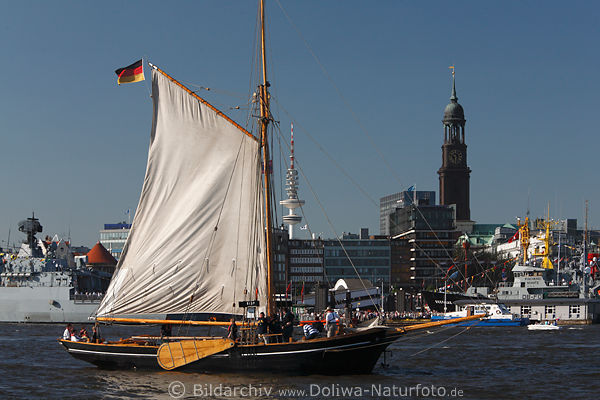 Hamburg Hafengeburtstag Schiffsparade Foto Einmast-Yachtboot Elbtour mit Weißsegel maritime Panorama