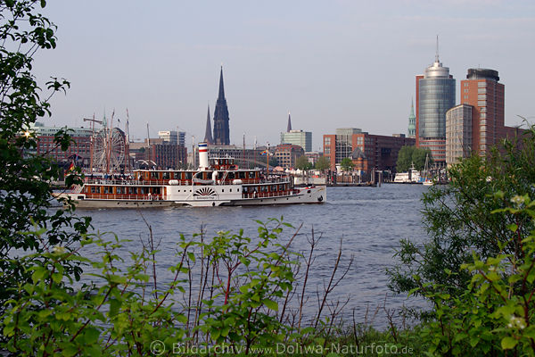 Hafenstadt Citypanorama, Südpanorama auf Baumwall, Karusellrad, Kirchturm, Dampfer, Dampferboot auf Elbe Paradefahrt Photos