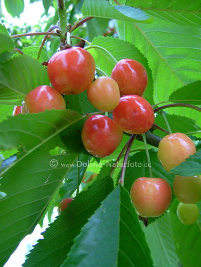 Prunus avium photo, red-yellow on tree, fruit-tree photo in picture-archive gallery