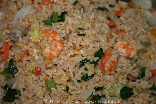 7021 Reis Bratspeise mit Garnelen, Fried Rice with shrimps, Reisspeise & Garnelenspeise FotoKrebstiere & Krabben, Krabbenart in Reis gebraten auf Thai-art, proteinreiche Meeresfrüchte, Speise, Nahrung Fotografie Food menschliche Lebensmittel
