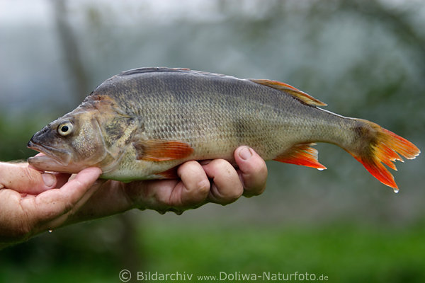 Barsch Foto Flussbarsch Perca fluviatilis Raubfisch Anglers Trophy Fischers Wurmangeln Trophäe