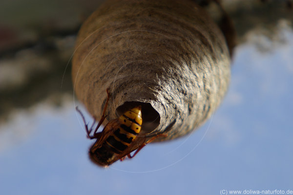 Nestbau Bruthaus am Himmel Wespe am Nestloch