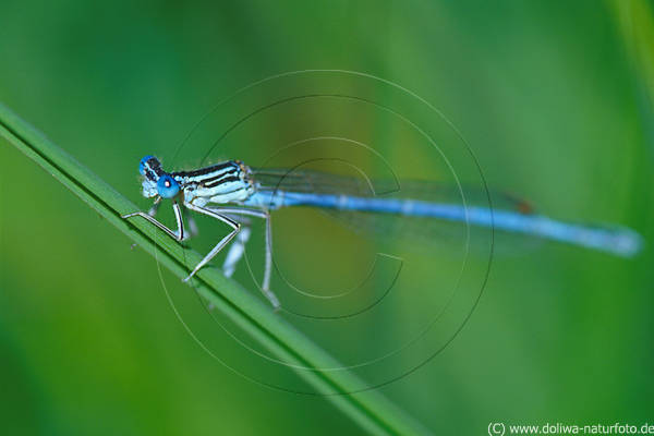 Insekt photo am Grashalm, Tierfoto in Natur bei Soltau lachend im Gras, Laughing blue dragonfly at the reed, insect macro photography