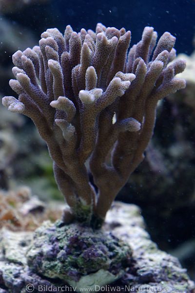 Steinkoralle Montipora digitata - blaue Farbform mit lila Wachstumsspitzen