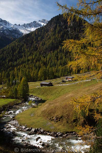 Osttirol Naturbild im Wanderparadies Patschertal, Waldhänge, Lärchen Goldfarben romantischer Alpenlandschaft in Österreich Nationalpark Hohe Tauern Deferegger Alpenblick