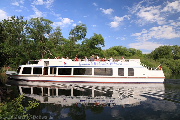 Urlaub auf Wakenitz: Amazonas des Norddeutschlands Wasserfluss Bord-Touristen schöne Reise durch grüne Flußlandschaft bietet herrliche Einblicke in beinahe unberührte Natur ehemaligen innerdeutschen Grenze Bootfahrt Naturbilder Ufer Ferienregion Lauenburgische Seen