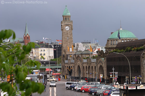 mit Uhr vor G.- Adolf Kirche am Hafentor & U-Bahn Station & Hafenstadt Häuser, Hamburg Stimmungfoto vom Touristikhafen, Hafen an Elbe in Fotografie