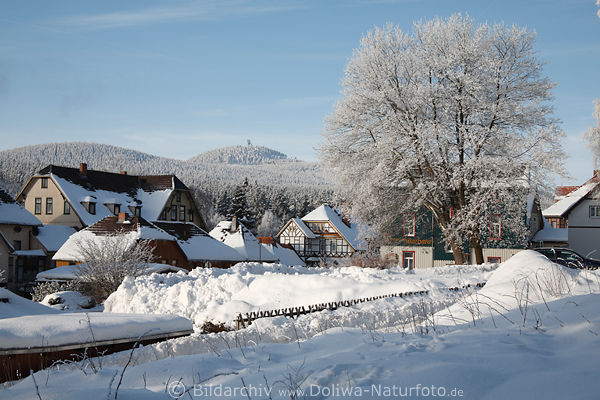 Winterurlaubsort Häuser in Schierker Naturbilder vom romantischen Harzurlaub im Oberharz, Winterferien mitten in Waldlandschaft Mittelgebirge. Wanderwege durch den Wald laden Wanderer ein zur Ausflüge in Natur Skisportler auf präparierte Skiloipen im aktiven Urlaub, auch günstige Gasthäuser