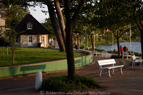 Seewasser Promenade in Schleswig-Holstein Urlaubsort Reise Bild in Abendlicht, Urlaub Reiseführer Norddeutschland Ausflug-Tipp