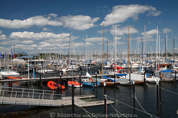 Kiel Reisebild, Hafenstadt an Kieler Förde Fotografie, Yachten, Segelboote, Kabinenboote, Yachtschiffe in Segleranlage der Hansestadt Urlaub an Ostsee Ausflugstip, Kieler Freizeit & Sportschifffahrt