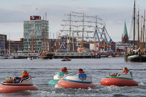 10 Minuten Wasserfahrt im runden Ponton mit eigenem Motor, Jugendfest & Kinderfest mit Yachthafen maritimer Blick, Wasserspass nicht nur für die Kleinen, Binnenhafen Attraktion Bild vor Hafensicht in Kiel City, Seglerfest Rahmenprogramm, Innenstadt zwischen Norwegenkai & Ostseekai Fotografie, Kieler Fest Hafenblick mit Großsegler, Kirche hinter Hörnbrücke an Hafenpromenade, Kieler Förde Freizeitangebot, Urlaub Reisebild