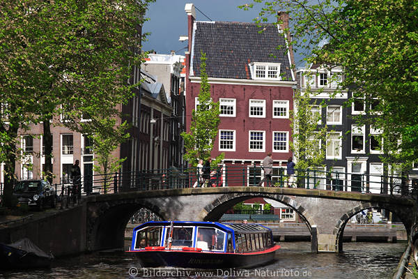 Holland Architektur vom Schiff erleben, auf Grachtenfahrt im Wasser-Kanal, Niederlande Reisetip, Canal-bus mit Touristen
