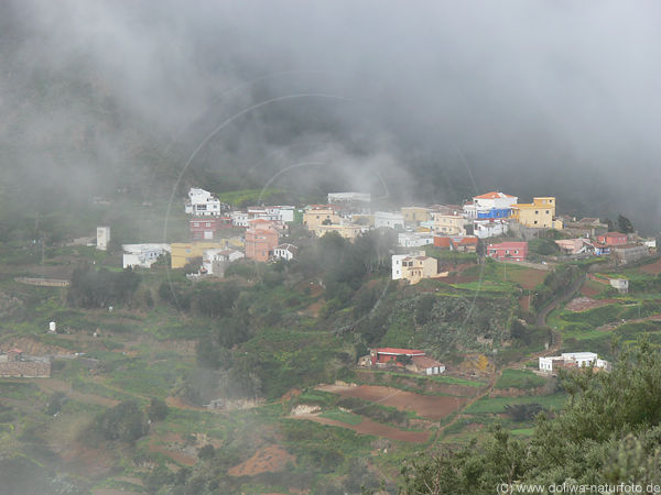 Kanareninsel im Urlaub Erlebniss Planzenwelt im Anaga Gebirge, Terassenfelder der Bergdörfer am Bergmassiv Schluchten, Kanarische Insel Ausflugstip, Reiseangebot, kleine verträumte Siedlung mit Finca Unterkünften in Berglandschaft am Berghang