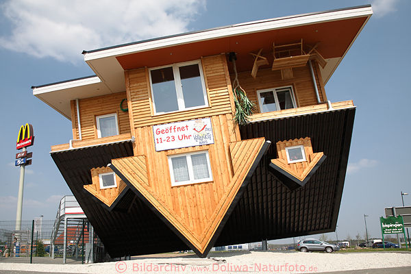 1100179. Lage des verrückten Hauses in Bispingen Bild neben McDonald & Snow-Dome bei KartbahnLüneburger Heide Ferien Ausflugstipp für Heidebesucher: neues Besucherhaus mit dem Kopf nach unten Fotografie an der BAB-Ausfahrt Bispingen |