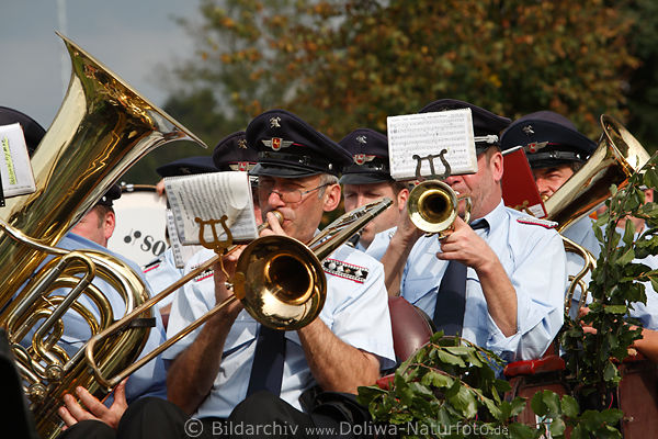 002625 - Posauner Orchester Bild in Marsch Blasinstrumente spielen bei Erntefest SteinbeckLüneburger HeideMusiker, Blaskapelle Artistentruppe Musikspielen beim Erntedankfest in Niedersachsen |