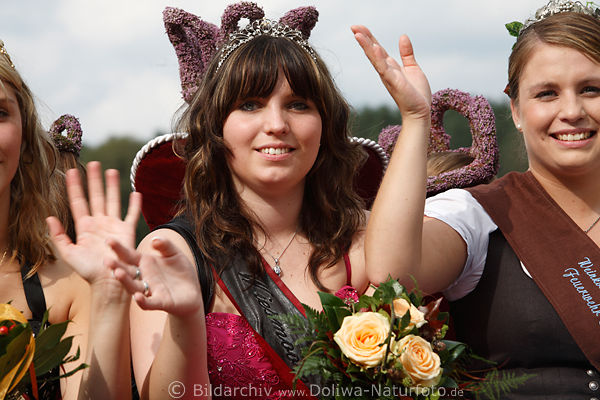 002636 Hübsche Heidemädels Bild: Königinnen mit Krone Blumenschmuck Steinbeck Erntedankfest |