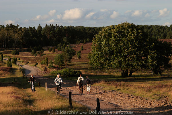 707492. Radfahrer auf Heidetour + Wanderer Bild auf Heidewanderweg bei Wulfsberg Abendstimmung wandernLüneburger Heide Natururlaub in Natur, Menschen im Urlaub mit Rad abends auf Heidewanderweg, durch Heidepfade trampeln, spazieren im Naturschutzgebiet Reisefoto, Kutschenweg in Fotografie der Heidelandschaft, Wacholderbäume im Landschaftsbild |