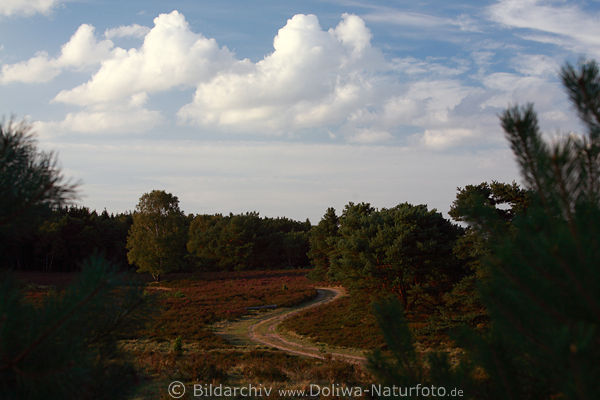 Kutschenweg in Bäumen zum Wald, Heideweg Naturfoto vom Lüneburger Naturschutzgebiet Wanderpfad