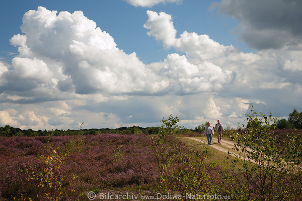 002048. Wanderer-Paar Senior-Duo Foto auf Wanderweg in Heidelandschaft Wolkenstimmung NaturbildMann & Frau Paar Aktivurlaub Ausflug in Heideblüte Naturerlebnis auf Spaziergang |