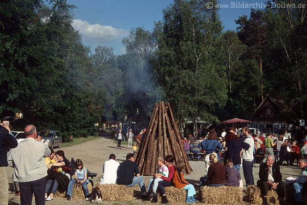 2653. Wacholderfest in Oberhaverbeck Menschen am Lagerfeuer LüneburgerHeide jährliches FestOrchester Musik spielen Kinder auf Strohballen in Fotografie Heidefest Bildarchiv |