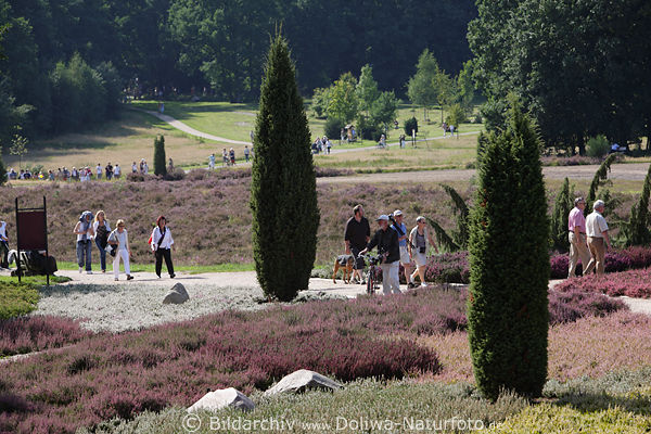 Heideblütenfest Touristen auf Gartenwegen im Heidegarten Höpen in Lüneburger Heideurlaub Bild |