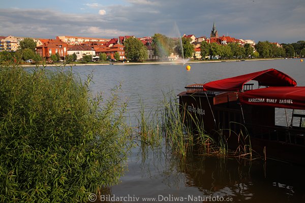 Lyckseeufer Wasserfontäne Stadtblick Landschaftsfotografie Ostpreussen Urlaubsreise