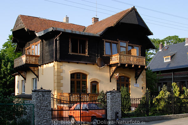 zum Mieten, eine der mehreren im Ort, Unterkünfte für Besucher, hier am Rande von Zentrum der Stadt uweit der Seepromenade 4-5 min. zu Fuss zum Ostseestrand in Kurort Międzyzdroje. Polnische Ostseeküste in Reisefoto vom Urlaubsort auf Insel Wollin ca. 12 km von Swinemünde entfernt.