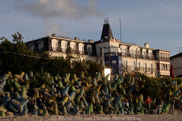 Romantik-Treffpunkt in Abendlicht, Mielno bei Köslin (Koszalin), Urlaubsort in Hinterpommern am Seestrand, Touristenort zwischen Meer & Jamunder See (Jezioro Jamno). Größere Ostseeorte westlich: Ustronie Morskie (Henkenhagen), weiter Kolberg (Kołobrzeg) & östlich Rügenwalde (Darłowo). Polen Bildarchiv Reisebild von Westpommern (Pomorze Zachodnie), Kurort für Touristen, Urlaubstip.