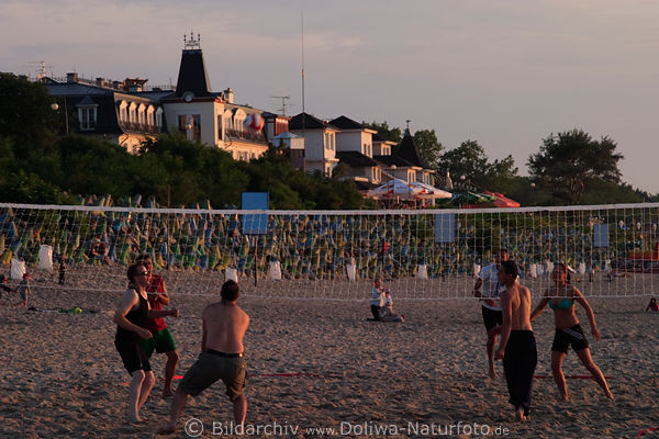 Urlaubsort Großmöllens Strandvolleyball vor Hotel & Restaurant “Sonnenuntergang” am Meerstrand nah Köslin (Koszalin) in Hinterpommern, Seestrand. Polen Bildarchiv Meer & See Kurort am Meerufer Westpommern (Pomorze Zachodnie) Reisefotografie, Touristen
