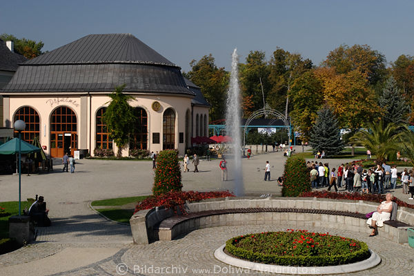 Niederschlesien Kurort Bild am Springbrunnen, Sudeten Urlaub in Schlesien Luftkurort, Kururlaub Reiseangebot Touristen Spaziergänger Treffpunkt in Zentrum der Reisestadt, Urlaubsort günstige Kuren
