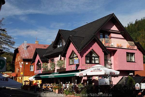 mit Unterkunft im Luftkurort Foto, Touristen & Urlauber in Riesengebirge (Karkonosze) beliebten Urlaubsort in Reisefotografie. Skigebiet & Reiseort im Urlaubbild