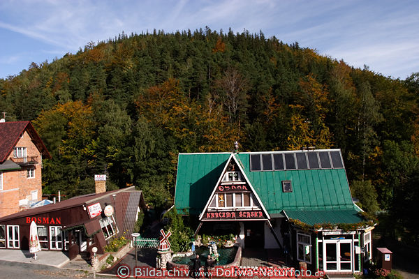 Riesengebirge (Karkonosze) Urlaub Momente, schönste Stadtansichten vom Luftkurort in Reisefotografie, Unterkunft & Restaurant, Urlauber Tip für Erholung im Skigebiet & Urlaubsort in Schlesien Bergen. Bunte Kneipe und Bar