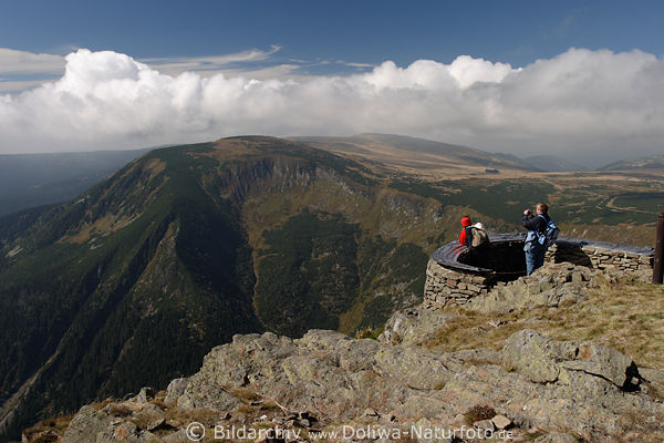 Riesengebirge Tundra Fotografie auf Tschechien-Seite bewundern, Koppenplan & Tellerhönige Blick, Wanderer Aussicht an der tschechisch-polnischen Grenze im Sudetengebirge. Karkonosze Snow WhiteMount mountains hikes traveling