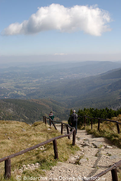 Wanderausflug bergab gehen vom “Schlesierhaus” unterhalb Schneekoppe in Berglandschaft Foto, tschechisch Sněžka, Reisefotografie Attraktion, leichte Wanderung Ausflugstip wandern