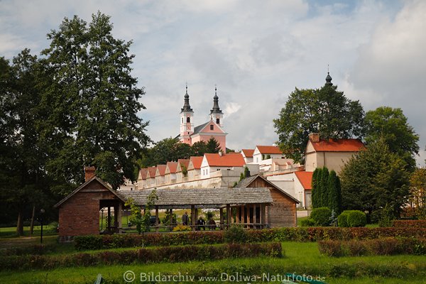 Historisches Gebäude der Kameduer (Eremiten) Mönche Fotografie Sicht auf Kirche Türme und Rotdächer. Suwalki Attraktion in Seenlandschaft Wigry Nationalpark Reise