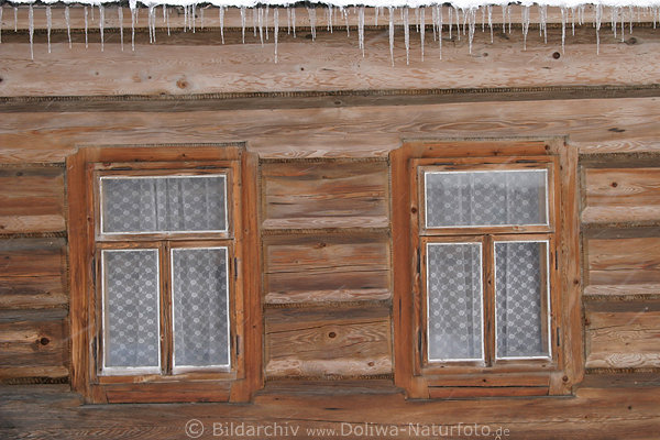 Holzbauweise Janosik Kult Holzhausfenster Podhale Holzhaus Museumsdorf-Lage Holzhaus-Eiszapfen Holzhaus-Fresken Wandfenster im Rauhreif