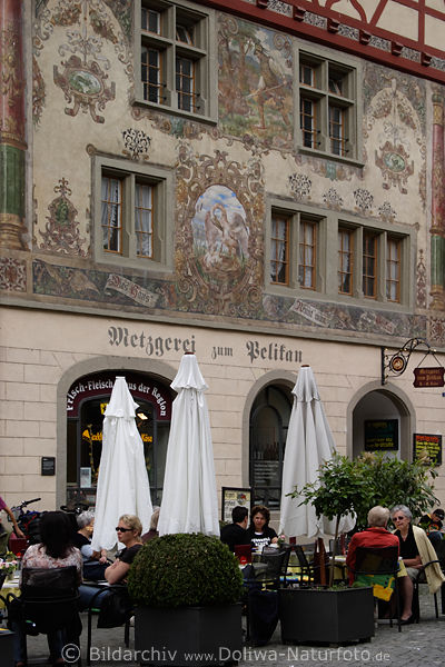 Fassadenmalereien, Wandmalereien an Wand der Metzgerei zum Pelikan: