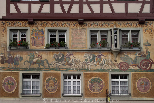 Rathausplatz Fresken' Freskenmalerei Geschichten' Haus zum Pelikan Fresken'