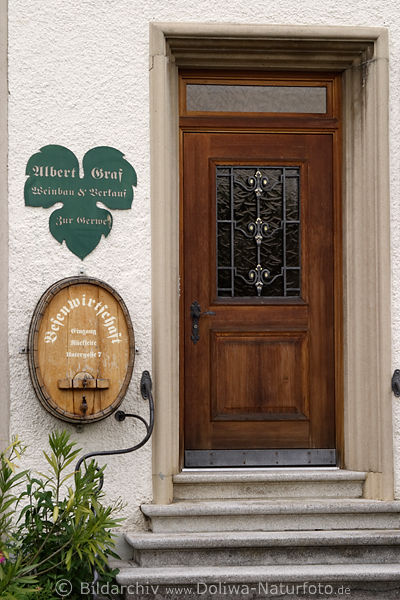 Bierfaß in der Wand neben der mit Aufschrift: