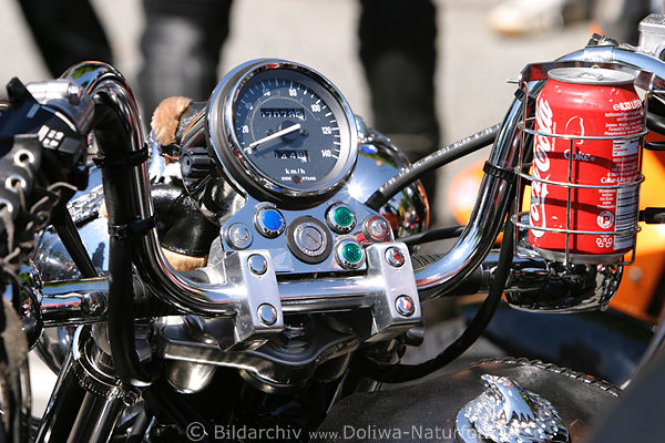 Tacho, Instrumente, Cola Dose, Knöpfe im Glanz, Tank Embleme, Motorrad Biker & Harley-Kult