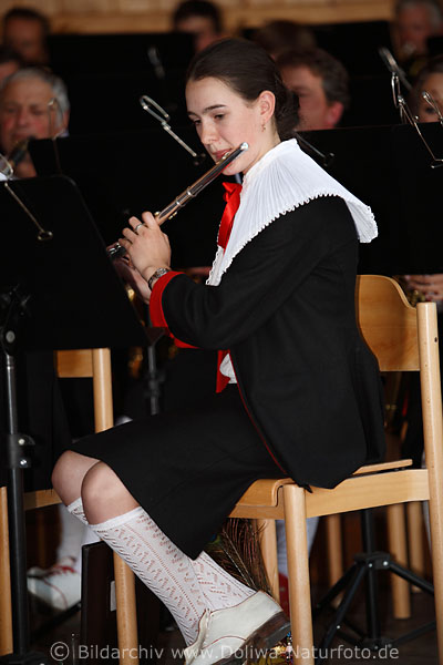 Südtiroler Musikkapelle hübsches Mädchen Bühnenauftritt mit Instrument, Musizieren beim Kirchtagfest im Trachtenkleidt
