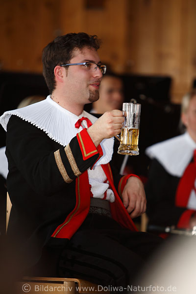 Konzertpause: Dirigent mit Bierkrug
