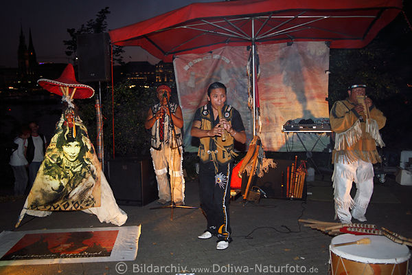Sänger im Konzert Musik spielen am Strassenrand unterm Zelt, Musiker-Trio beim Tanzauftritt, Indianer Rythmen & Musikunterhaltung Bild. Singers image