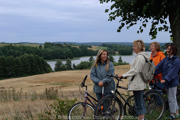 (mazury, jezioro Buwełno, Przykop), Mädels unterwegs mit Fahrrad, Naturausflug mit Rad in Masuren, Ostpreussen Urlaub & Freizeit in Landschaftbild