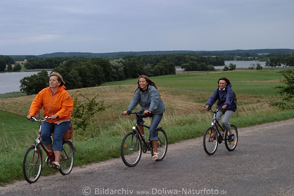 Martinshagen / Hessenhöhe, nah Lötzen (mazury, jezioro Buwełno, Marcinowa Wola, Przykop, Gizycko), Mädelspaar unterwegs mit Fahrrad am See in Masuren Landschaft, Radtour mit Zweirad in Freizeit, radfahren in Ostpreussen Urlaub