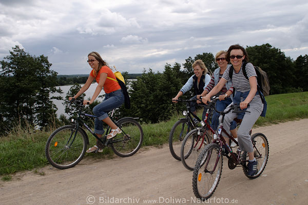 Mädels unterwegs mit Fahrrad, Velotour per Pedale mit Zweirad, Radtour in Ostpreussen Urlaub, radfahren am Ublick See (Ublik Wielki, gem Milken)