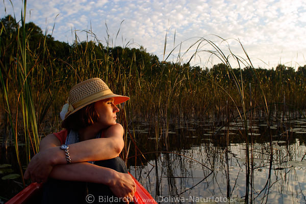 Frauportrait in Abendlicht stiller Seelandschaft, Maedel bei Sonnenuntergang, Relax in Abendsonne, Licht der untergehenden Sonne, maedel, model, Maedchen, Seeabend Momente in Naturlandschaft