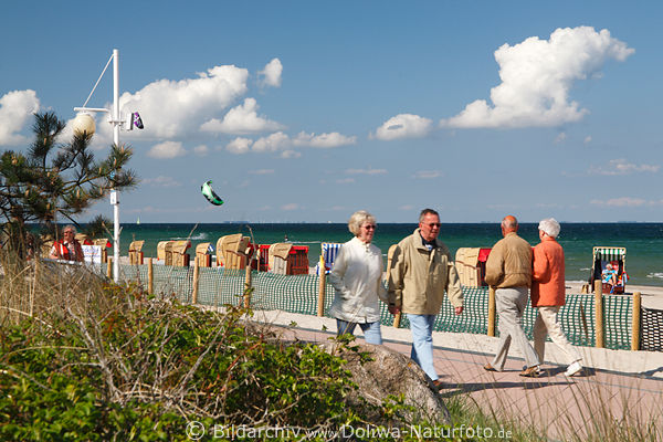 Menschen in Freizeit Bild am Meerromenade in frischer Luft der Seeküste auf Fussweg im Sonnenschein