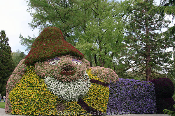 Blumenkobold wartend auf Gartenliebhaber & Floratouristen auf grüner Gartenschau durch Bodensee Inselpark, Blumenmensch Fotografie, ein Blütentroll ist ein schönes Beispiel was man so alles aus Blumen machen kann: Gartenfloristik, schöne Idee aus Blumen, Blumendekoration zum Nachmachen für Hobbygärtner, eine Blumenfigur ein Komponent perfekten Gartengestaltung