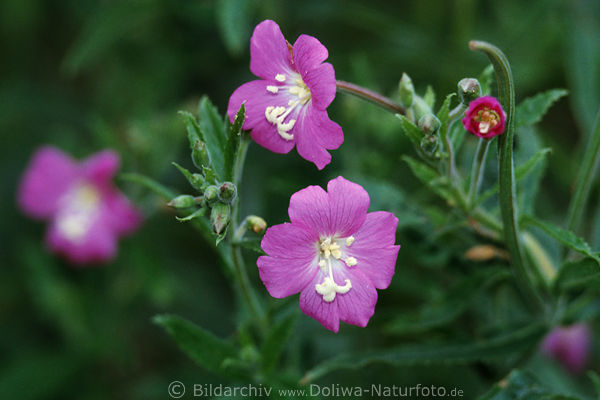Wildblume Dia Naturaufnahme blühende Wildflora am Wegesrand sichtbare Staubblätter und grüne Pflanzentriebe mit Fruchtkapseln Naturfotografie am Feldrand. Siehe auch andere Weidenröschen. Epilobium pink-flower image blooming in nature